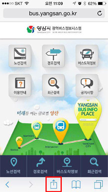 1. ¾ç»ê½Ã ¹ö½ºÁ¤º¸½Ã½ºÅÛ ¸ð¹ÙÀÏ »çÀÌÆ® Á¢¼ÓÈÄ È¸é ¾Æ·¡ ¹öưÀ» ´©¸¨´Ï´Ù.