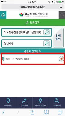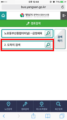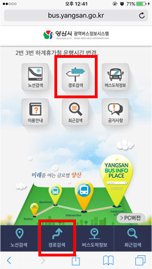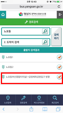 1. ¾ç»ê½Ã ¹ö½ºÁ¤º¸½Ã½ºÅÛ ¸ð¹ÙÀÏ ¸ÞÀΠȸ鿡¼ °æ·Î°Ë»öÀ» ¼±ÅÃÇÕ´Ï´Ù.