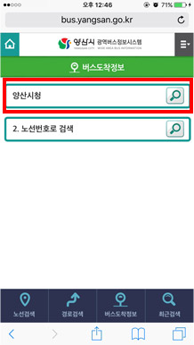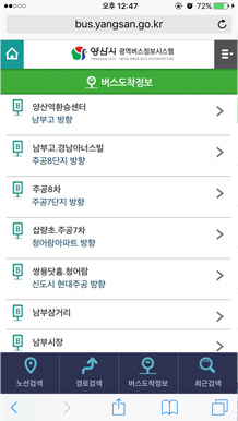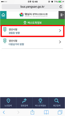 1. ¾ç»ê½Ã ¹ö½ºÁ¤º¸½Ã½ºÅÛ ¸ð¹ÙÀÏ ¸ÞÀΠȸ鿡¼ ¹ö½ºµµÂøÁ¤º¸¸¦ ¼±ÅÃÇÕ´Ï´Ù.