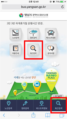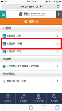 1. ¾ç»ê½Ã ¹ö½ºÁ¤º¸½Ã½ºÅÛ ¸ð¹ÙÀÏ ¸ÞÀΠȸ鿡¼ ÃÖ±Ù°Ë»öÀ» ¼±ÅÃÇÕ´Ï´Ù.